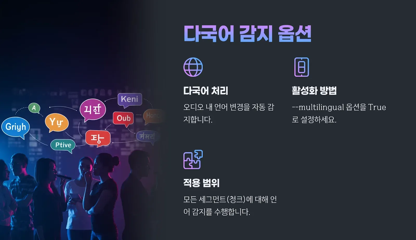 - 옵션들을 조합하여 다양한 음성 인식 및 자막 생성 작업을 수행할 수 있습니다.